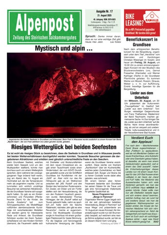 möchten wir uns auf diesem Weg herzlich bedanken. Unser besonderer Dank gilt dem Team der Pflegestation Bad Aussee mit Frau Gerti Grieshofer, Hausarzt Dr. Kranawetter für die jahrelange Betreuung, den Ärzten und Schwestern des LKH Bad Aussee und der Mannschaft des Roten Kreuzes. Ein herzliches Vergelt´s Gott Herrn Pfarrer Edi Muhrer mit den Ministranten, dem Kirchenchor und dem Sologesang für die feierliche Gestaltung des Hl. Requiems, den Vorbeterinnen Hannerl und Gerti sowie Herrn Franz Egger von der Bestattung Haider. Dankeschön auch der Freiwilligen Feuerwehr Altaussee mit den Trägern, den Augstbachler Schützen und der Salinenmusik sowie Herrn HBI Werner Fischer und Oberschützenmeister Ludwig Fischer für die persönlichen Worte des Abschieds. Vielen Dank unseren lieben Verwandten und Bekannten, Freunden und Nachbarn für die vielen Kranz-, Blumen-, Kerzen- und Geldspenden, allen die uns tröstende Worte geschrieben haben und all jenen, die unseren lieben Vater auf seinem letzten Weg begleitet haben. In stiller Trauer: