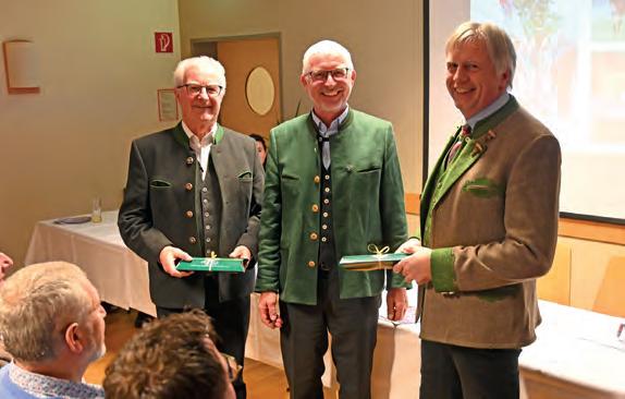 Die langjährigen Funktionäre des Narzissenfestvereines, Herbert Sams (l.) und Helmut Bauer wurden nach ihrer „Narzissenfestpensionierung“ von Obmann Rudi Grill für ihre Verdienste geehrt. Nicht am Foto: Edi Podsednik.