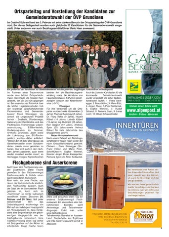 Ortsparteitag und Vorstellung der Kandidaten zur Gemeinderatswahl der ÖVP Grundlsee Im Gasthof Schraml fand am 3. Februar mit sehr starkem Besuch der Ortsparteitag der ÖVP Grundlsee statt. Bei dieser Gelegenheit wurden auch gleich die 22 Kandidaten für die Gemeinderatswahl vorgestellt. Unter anderem war auch Bezirksgeschäftsführer Mario Haar anwesend.