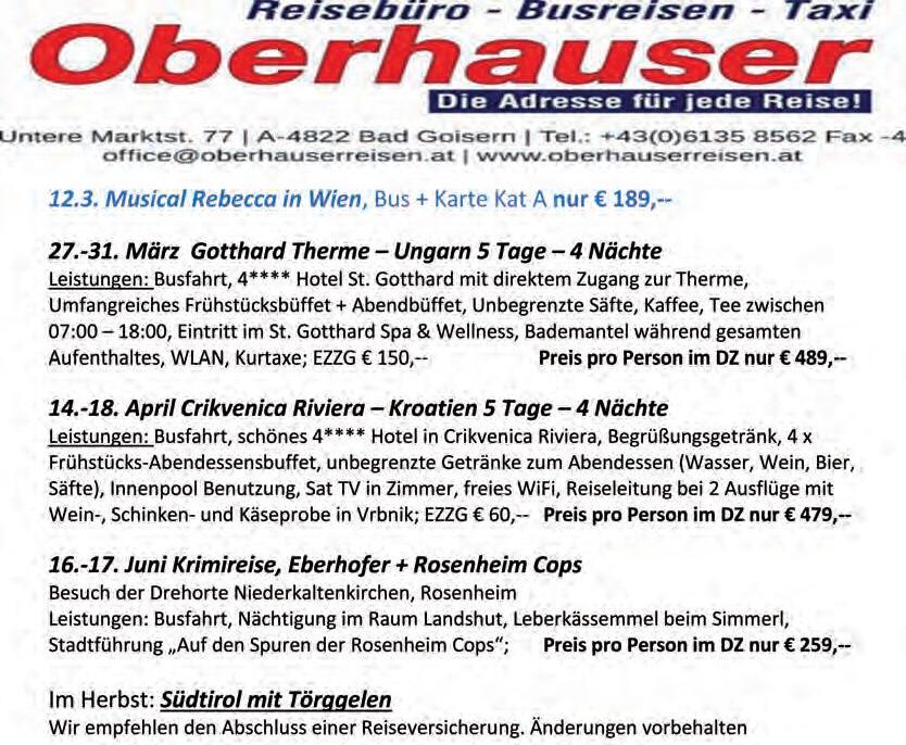 Erscheinungsweise : 14tägig – Preis: € 1,80 Medienförderungsverein Ausseerland, Kammerhofgasse 227, 8990 Bad Aussee. Tel. 03622/53118