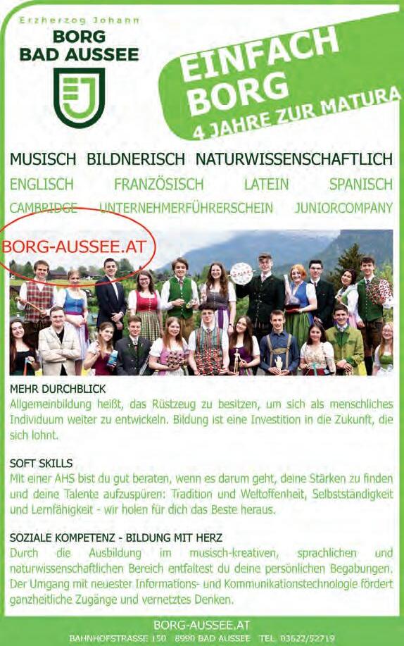 Redaktion: Medienförderungsverein Ausseerland, 8990 Bad Aussee, Kammerhofgasse 227.