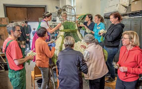 Der Narzissenfestverein unterstützt Korsoteilnehmer mit Rat, Tat und Materialkosten. Auch fertige Figuren verleiht der Verein: Diese müssen vor dem Fest nur noch mit Narzissen geschmückt werden, die die Korsoteilnehmer vorher pflücken.