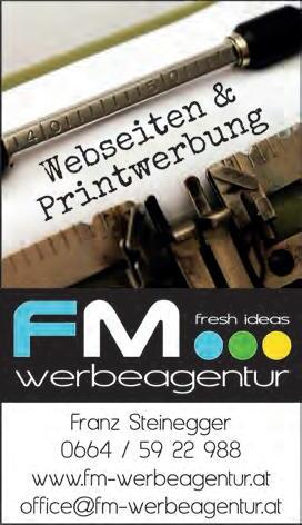 email: redaktion@alpenpost.at Für den Inhalt verantwortlich: Florian Seiberl. Druck: Druckerei WALLIG, 8962 Gröbming. Erscheinungsweise: 14-tägig. Einzahlungen auf das Konto AT764501030400030000 bei der Volksbank Salzburg. Aufgrund der Lesbarkeit der Artikel wird bei Bedarf nur eine Geschlechtsform gewählt. Dies bedeutet jedoch keine Benachteiligung des anderen Geschlechtes. Die mit ß versehenen Artikel sind bezahlte Anzeigen. Die Redaktion behält sich das Recht vor, zugesandte Leserbriefe zu kürzen und übernimmt keine Haftung für den Inhalt kostenloser Ankündigungen. Alle Rechte vorbehalten. Druck- und Satzfehler vorbehalten. Österreichische