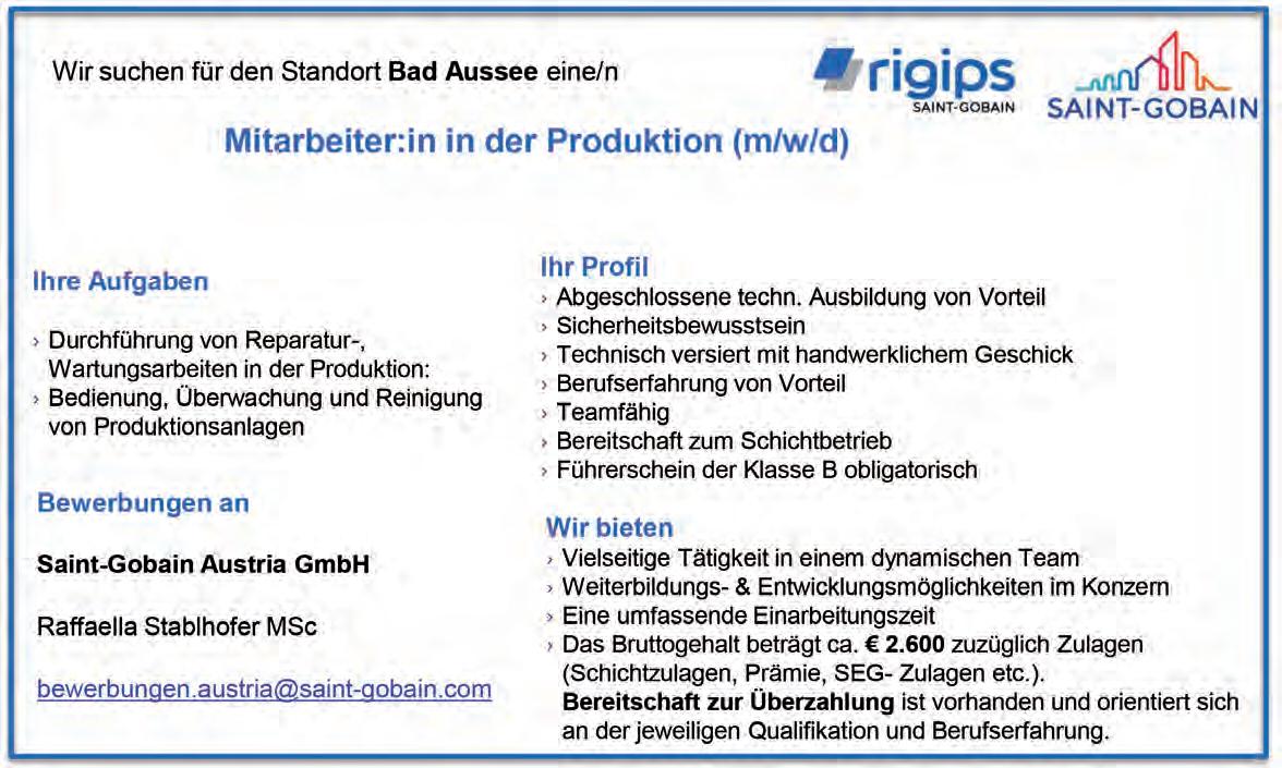 Zeitung des Steirischen Salzkammergutes Herausgeber, Medieninhaber und Redaktion: Medienförderungsverein Ausseerland, 8990 Bad Aussee, Kammerhofgasse 227. Telefon: 03622/53118, FAX: 03622/53118-577 email: redaktion@alpenpost.at Für den Inhalt verantwortlich: Florian Seiberl. Druck: Druckerei WALLIG, 8962 Gröbming. Erscheinungsweise: 14-tägig. Einzahlungen auf das Konto AT764501030400030000 bei der Volksbank Salzburg. Aufgrund der Lesbarkeit der Artikel wird bei Bedarf nur eine Geschlechtsform gewählt. Dies bedeutet jedoch keine Benachteiligung des anderen Geschlechtes. Die mit ß versehenen Artikel sind bezahlte Anzeigen. Die Redaktion behält sich das Recht vor, zugesandte Leserbriefe zu kürzen und übernimmt keine Haftung für den Inhalt kostenloser Ankündigungen. Alle Rechte vorbehalten. Druck- und Satzfehler vorbehalten.