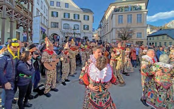 „Wegzehrung“ getrunken, bevor sie gut gelaunt gleich sechs neue Trommelweiber in ihren Reihen begrüßen konnten. Die Bleß tobten mit den Jugendlichen im Kurpark um die Wette und die Maschkerafischer sahen für ihre hundert Jahre erstaunlich frisch aus. Als dann im gleißenden Sonnenlicht der Flinserltanz am Kurhausplatz abgehalten wurde und die Kostüme jede DiscoKugel in den Schatten stellten, blieb wohl kein Fotoapparat unbenutzt. Schön, dass der Fasching wieder so ausgelassen gefeiert werden konnte. In einer Zeit, in der permanent von „Krisen“ gesprochen wird, tat dies sichtlich wohl. Fotos ab Seite 22.