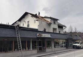 Am Haus Ischler Straße 72 rollte der Föhnsturm das Blechdach auf. Wegen Gefahr im Verzug sperrte die Exekutive die Straße.