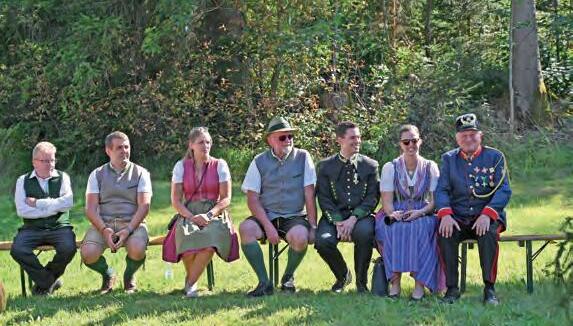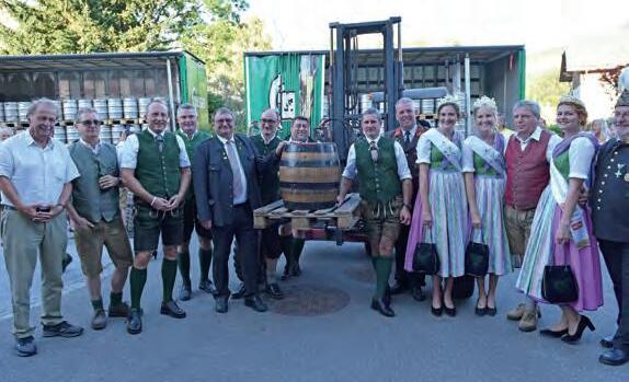 aus, wie auch die Fischer Süßigkeiten als „Köder“ an ihren Angeln befestigt hatten. Auch die Krampusse sorgten für Furore –nicht nur, weil sie bei dieser Sommerhitze mit ihren dicken Fellgewändern nicht kollabierten, sondern auch ihrer Aufgabe als „Kinder- und Erwachsenenschreck“ penibelst nachkamen. Ein unerschrockener junger Mann wurde sogar im Buckelkorb gleich mitgenommen. Kurzum: Die Besucher des Festzuges hatten allerhand zu sehen. Beim Ankommen der diversen Gruppierungen am Festplatz wurden diese im Detail vorgestellt und auch Bezirkskapellmeister Ludwig Egger wurde dort willkommen geheißen.