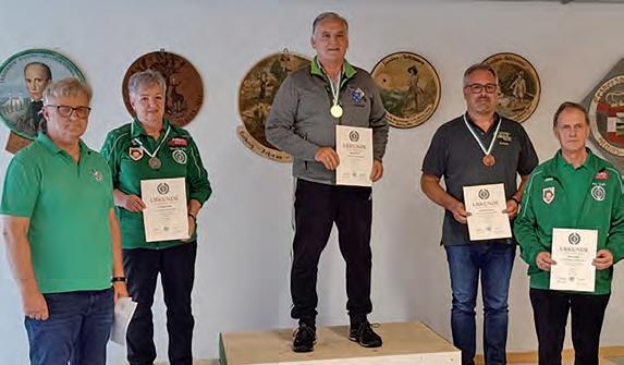 drei Ringen Rückstand den vierten Rang in der Herrenklasse. Wilhelm Schrempf holte sich bei den Senioren den starken dritten Platz. Mit einer sensationellen Leistung in der Klasse „Senioren 2 stehend aufgelegt“ ließ Rudolf Preßl die Konkurrenz hinter sich und kürte sich mit 386 Ringen zum steirischen Meister. Wilhelm Schrempf konnte mit viel Kampfgeist bei Jahrzehnter erfolgreicher Teilnahme bei den österreichischen Meisterschaften in Innsbruck (Hall) vom 19. bis 24. September in der Disziplin Kleinkaliber 50 Meter 2x30 Schuss (liegend, stehend) wieder aufzeigen und erreichte die Silbermedaille. Der SV Kainisch kann stolz auf seine Mitglieder sein. Mit Disziplin, Teamgeist und Leidenschaft wurden auch in diesem Sommer zahlreiche Erfolge gefeiert.