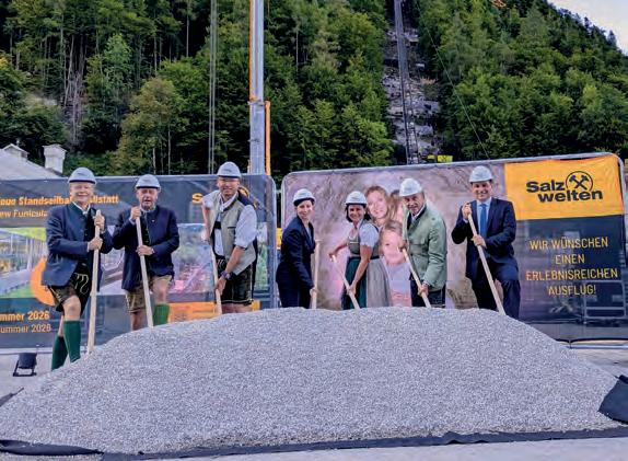 Nun beginnt jedoch ein neues Kapitel: Bis Juni 2026 entsteht in Hallstatt die modernste Standseilbahn der Welt. Ein ambitionierter Zeitplan, den die Projektpartner der Doppelmayr-Gruppe und zahlreiche regionale Unternehmen gemeinsam mit den Salzwelten umsetzen wollen. Ein symbolischer Höhepunkt auf diesem Weg war der of fi zielle Spatenstich, der im Rahmen der Veranstaltung begangen wurde. Mit vereinten Kräften griffen Vertreter aus Politik, Tourismus und Wirtschaft zum Spaten – ein sichtbares Zeichen für den Aufbruch in eine neue Ära am Hallstätter Salzberg. „Die Salzbergbahn ist für Hallstatt weit mehr als ein Verkehrsmittel –