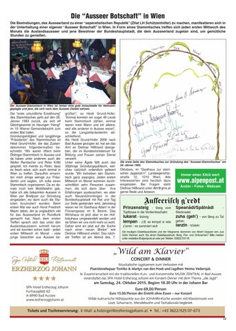 Die “Ausseer Botschaft” in Wien Die Bestrebungen, das Ausseerland zu einer “seperatistischen Republik” (Zitat LH Schützenhöfer) zu machen, manifestieren sich in der Unterhaltung einer eigenen “Ausseer Botschaft” in Wien. In Form eines Stammtisches treffen sich jeden ersten Mittwoch des Monats die Auslandsausseer und jene Bewohner der Bundeshauptstadt, die dem Ausseerland zugetan sind, um gemütliche Stunden zu genießen.