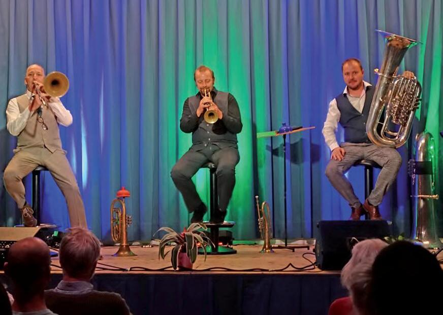 Als Pfarrer von Altaussee hat man gesellschaftliche Normen zu erfüllen: Intendant Ferdinand Wegscheider (l.) als Musikant der „Berigmusi“ gemeinsam mit dem Dorfpolizisten Franz Gasperlmaier (Johannes Silberschneider, r.) bei den Dreharbeiten zu „Letzte Bootsfahrt“ im Oktober 2021.