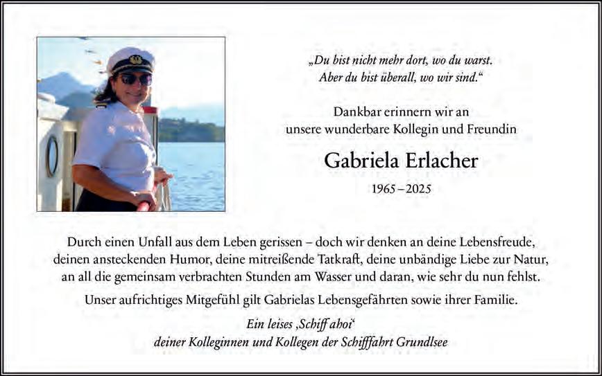 € 28.300,– auf, weshalb Projekte verschoben und Einsparungspotenziale wahrgenommen wurden. Die aktuellen Vorhaben der Gemeinde sind das Musikhaus (finanziert mit Bedarfszuweisungen), der Schulbusankauf, die Fenster der Volksschule sowie Infrastrukturmaßnahmen, wobei diese – aufgrund des angespannten Budgets – auf das unbedingt Notwendigste gekürzt wurden. Selbiges gilt für die öffentlichen WC-Anlagen. Der Gürtel wird in Grundlsee nun noch enger geschnallt werden müssen. Der Nachtragsvoranschlag wurde einstimmig verabschiedet. Allfälliges Zum Abschluss wurde von einer neuen Slipanlage für das Feuerwehrboot am Toplitzsee berichtet, wie auch die Verschmutzung des Grundlsees ein Thema war. So hatten mehrere Gemeinderäte eine sehr intensive Algenblüte sowie ein Wachstum der Wasserpflanzen im heurigen Jahr beobachtet. Auch die extreme Trübung des Sees im Juli wurde angesprochen. Die Wasserqualität soll durch ein beauftragtes Institut nun für mehrere Monate beobachtet werden.