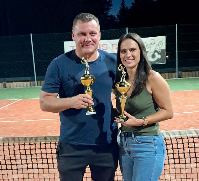 Besonders erfreulich war die rege Teilnahme und die tolle Stimmung während der gesamten Turnierdauer. Viele Zuseher verfolgten mit Begeisterung die Spiele und feuerten die Teilnehmer kräftig an. Nach zahlreichen interessanten Begegnungen standen schließlich die Vereinsmeister 2025 fest. Im Damen-Einzel holte Carina Haider den Sieg, im HerrenEinzel Christian Stangl. Im DamenDoppel siegten Carina Haider und Monika Möstl, beim Herren-Doppel Niclas Werger und Jürgen Winkler.