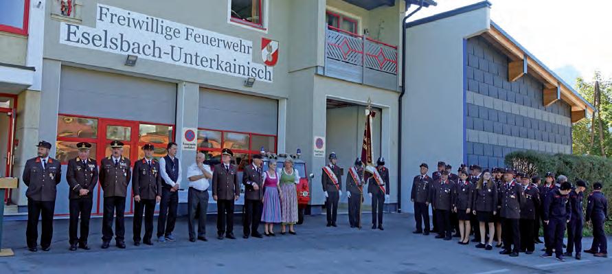 Vizepräsident des Roten Kreuzes Steiermark, Otto Marl. Bei seiner Festrede ging Kommandant HBI Marco Oberfrank kurz auf die Geschichte der Wehr ein. Es begann 1923 mit einem Zeughaus in Eselsbach, gefolgt von einem weiteren Zeughaus 1931. 1962 schritt die Motorisierung voran und bereits 1964 gab es die Anschaffung eines roten „Haflinger-Einsatzfahrzeuges“ und einer weiteren Pumpe. 1975 und 1979 kamen Grundstücke dazu und so entwickelte sich die FF Eselsbach-Unterkainisch sukzessive weiter. Als Stützpunkt eines Drehleiterfahrzeuges, welches 2019 in Dienst gestellt wurde, kommt der