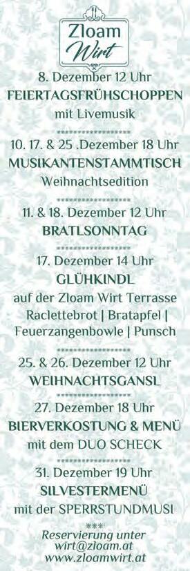 email: redaktion@alpenpost.at Für den Inhalt verantwortlich: Florian Seiberl. Druck: Druckerei WALLIG, 8962 Gröbming. Erscheinungsweise: 14-tägig. Einzahlungen auf das Konto AT764501030400030000 bei der Volksbank Salzburg. Aufgrund der Lesbarkeit der Artikel wird bei Bedarf nur eine Geschlechtsform gewählt. Dies bedeutet jedoch keine Benachteiligung des anderen Geschlechtes. Die mit ß versehenen Artikel sind bezahlte Anzeigen. Die Redaktion behält sich das Recht vor, zugesandte Leserbriefe zu kürzen und übernimmt keine Haftung für den Inhalt kostenloser Ankündigungen. Alle Rechte vorbehalten. Druck- und Satzfehler vorbehalten.