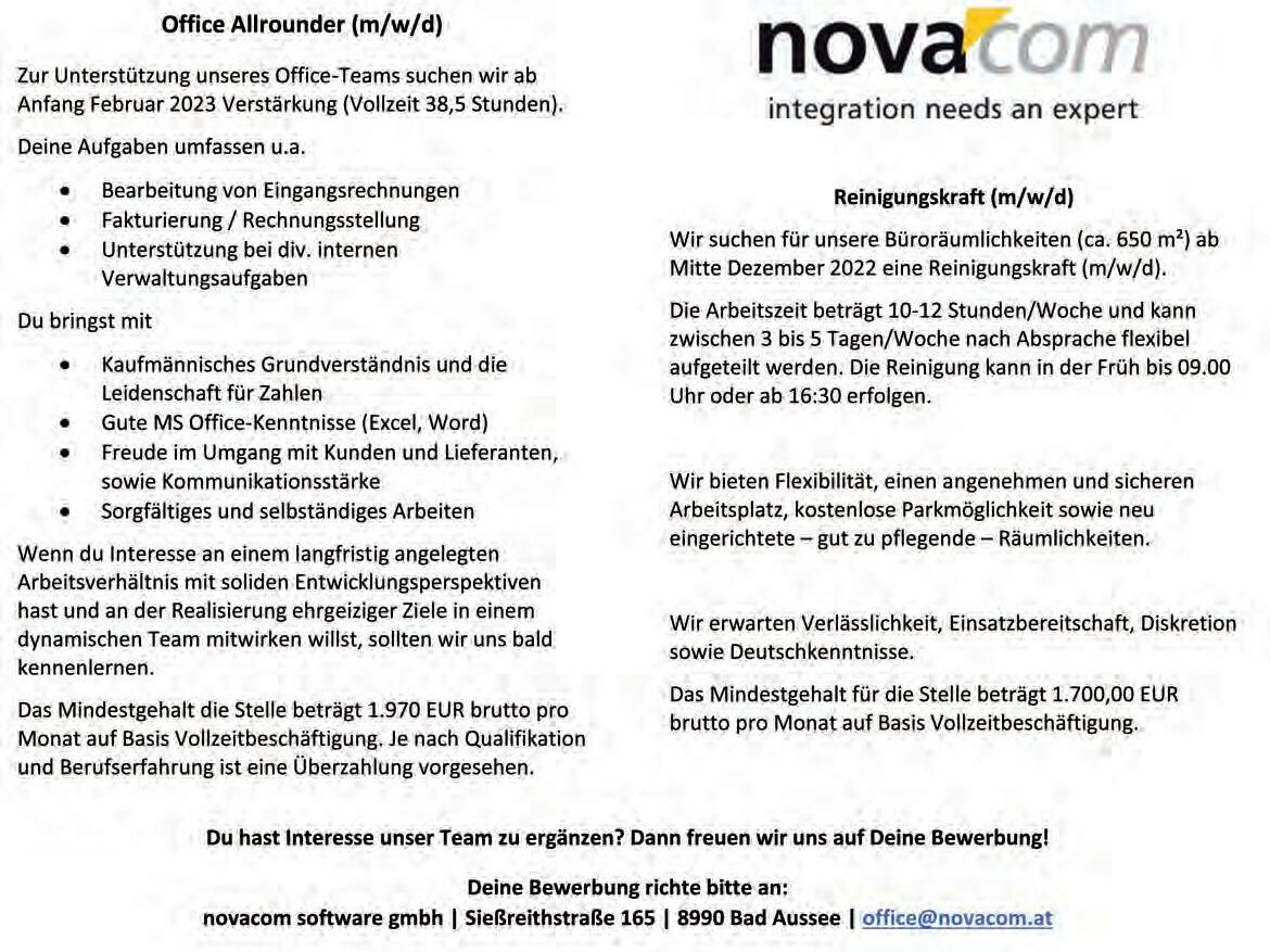 für diverse Büroarbeiten mit Buchhaltungs- und Lohnverrechnungskenntnissen ab sofort in Teilzeit. Vorausgesetzt wird selbständiges Arbeiten. Flexibilität und Computerkenntnisse werden erwartet. Wir freuen uns auf Ihre schriftliche Bewerbung. Zuschriften unter Chiffre 6410.