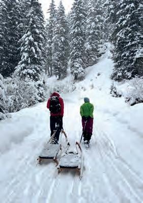 So genossen wir den ersten Nachmittag mit tief verschneiter Landschaft im Tal und machten eine kurze Wanderung mit Rodelabfahrt.