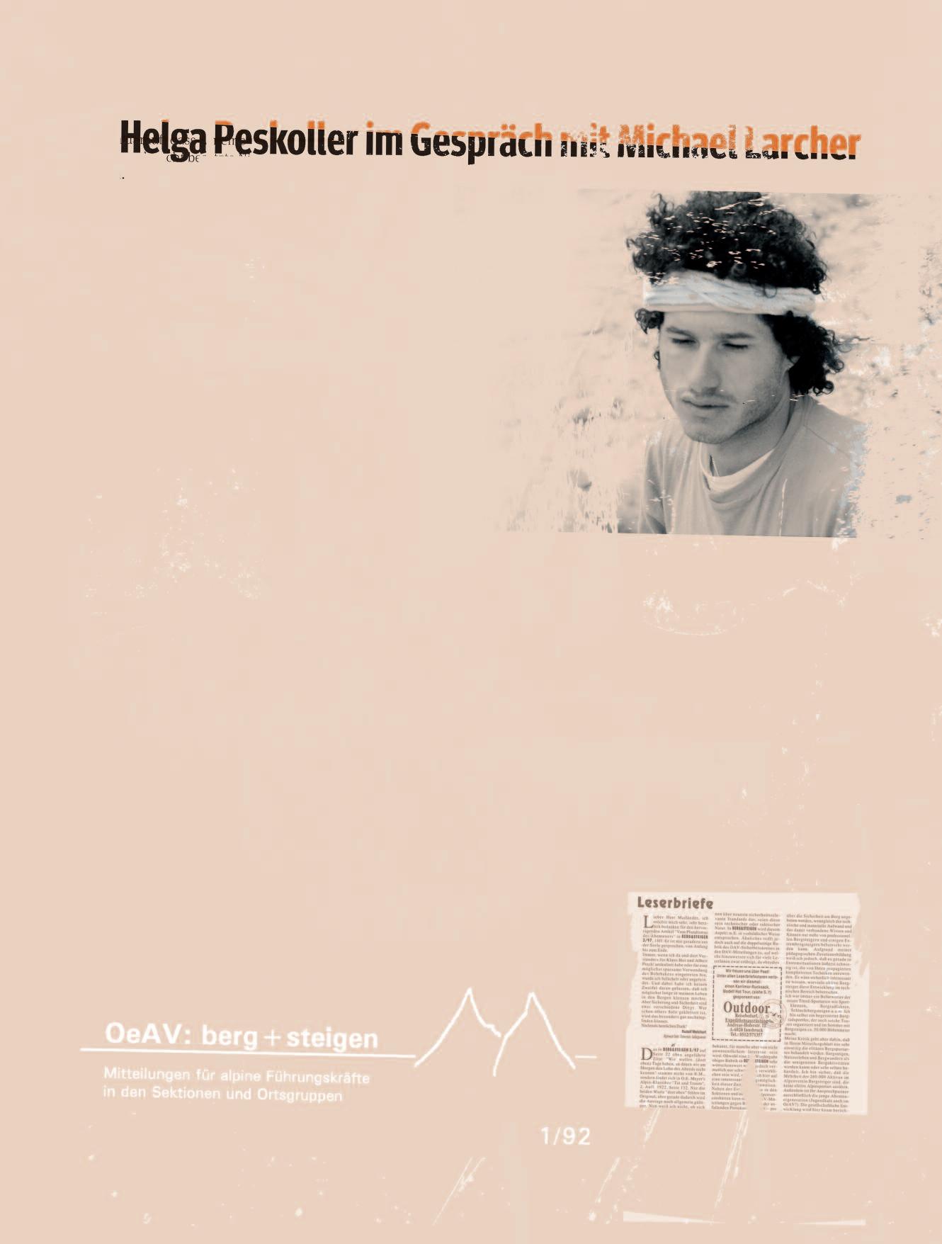 Doch: Für Dinge, die einem wichtig sind, muss man sich Zeit nehmen. Und bergundsteigen ist mir wichtig Immer noch, vielleicht sogar mehr denn je Anlässlich der #100 werde ich in dieser Ausgabe mehrmals schmeichelnd erwähnt Von Robert Renzler, dem Generalsekretär des ÖAV und meinem Arbeitgeber in seinem Kommentar, und von Michael Larcher In seinem Inter view auf Seite 68 können Sie auch nachlesen, dass ich seit 1995 bei bergundsteigen mitarbeite Michael war damals der Obmann der Bergführersektion Innsbruck und ich wollte von ihm eigentlich nur das geile Bergführer-Abziehbildl für s Auto holen Daraus ist der erste Beitrag für Berg&Steigen geworden, eine fortwährende Zusammenarbeit mit dieser Zeitschrift neben meiner Arbeit als RTA an der Klinik Innsbruck und der Führerei, eine Festanstellung beim ÖAV und letztendlich ein Werkvertrag als selbstständiger Chefredakteur Michael war mein Mentor und Freund und ich glaube, ich habe mich bei ihm nie dafür bedankt Danke Michael
