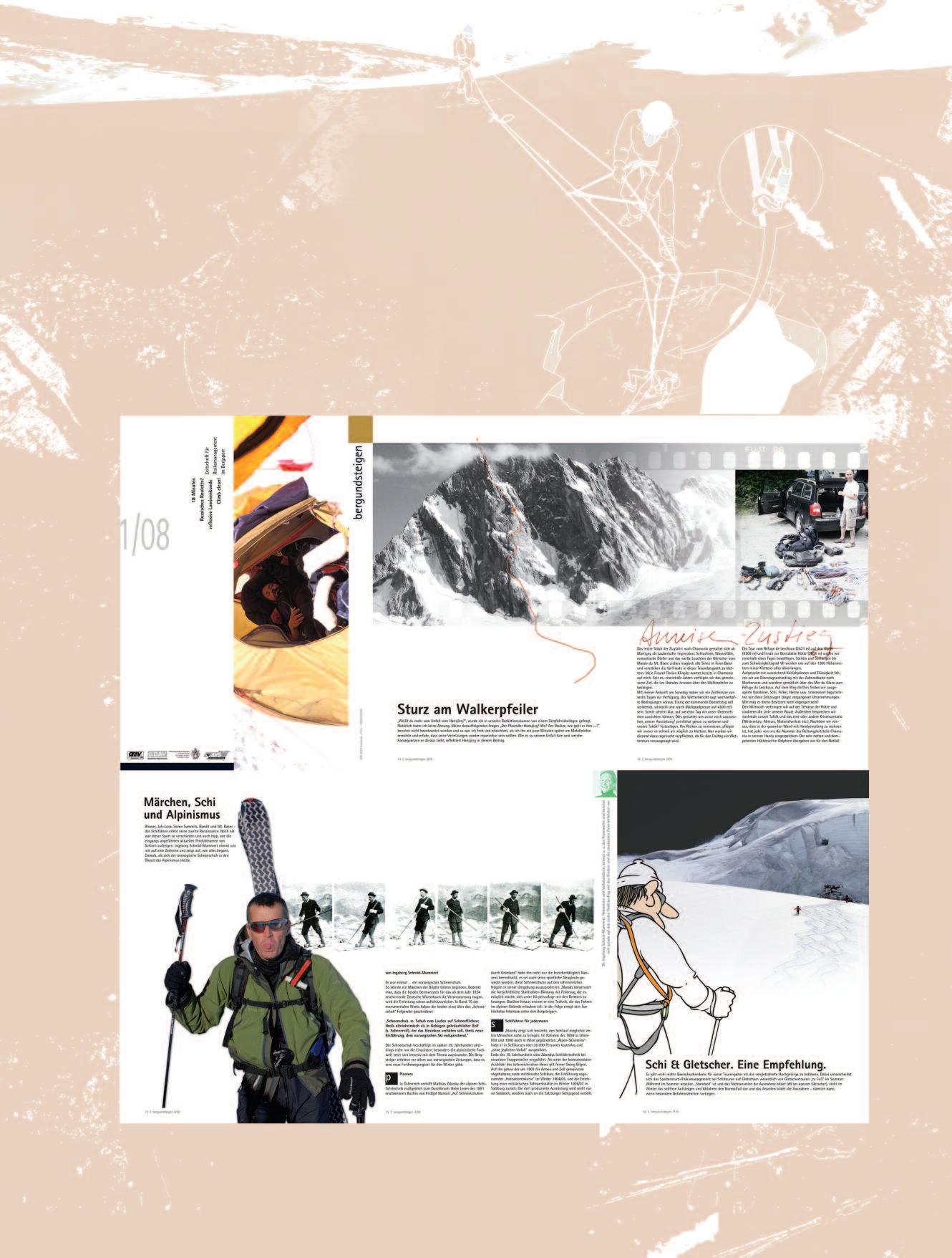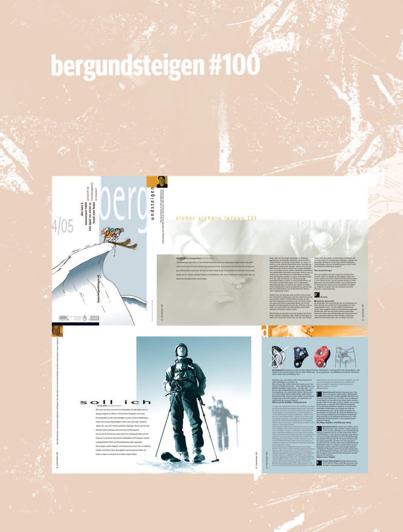 In den Jahren erlebte bergundsteigen mehrere grafische und Formatänderungen Zuerst noch ohne Untertitel wurde aus der „Zeitschrift für Risikomanagement im Bergsport“ die Zeitschrift für „Menschen • Berge • Unsicherheit“ Auch gab es Abklärungen, ob bergundsteigen in Französisch und Italienisch erscheinen sollte, oder ob es eine „internationale“ Ausgabe übersetzt ins Englische geben sollte Dies scheiterte vor allem an den hohen Kosten und dem notwendigen personellen Auf wand