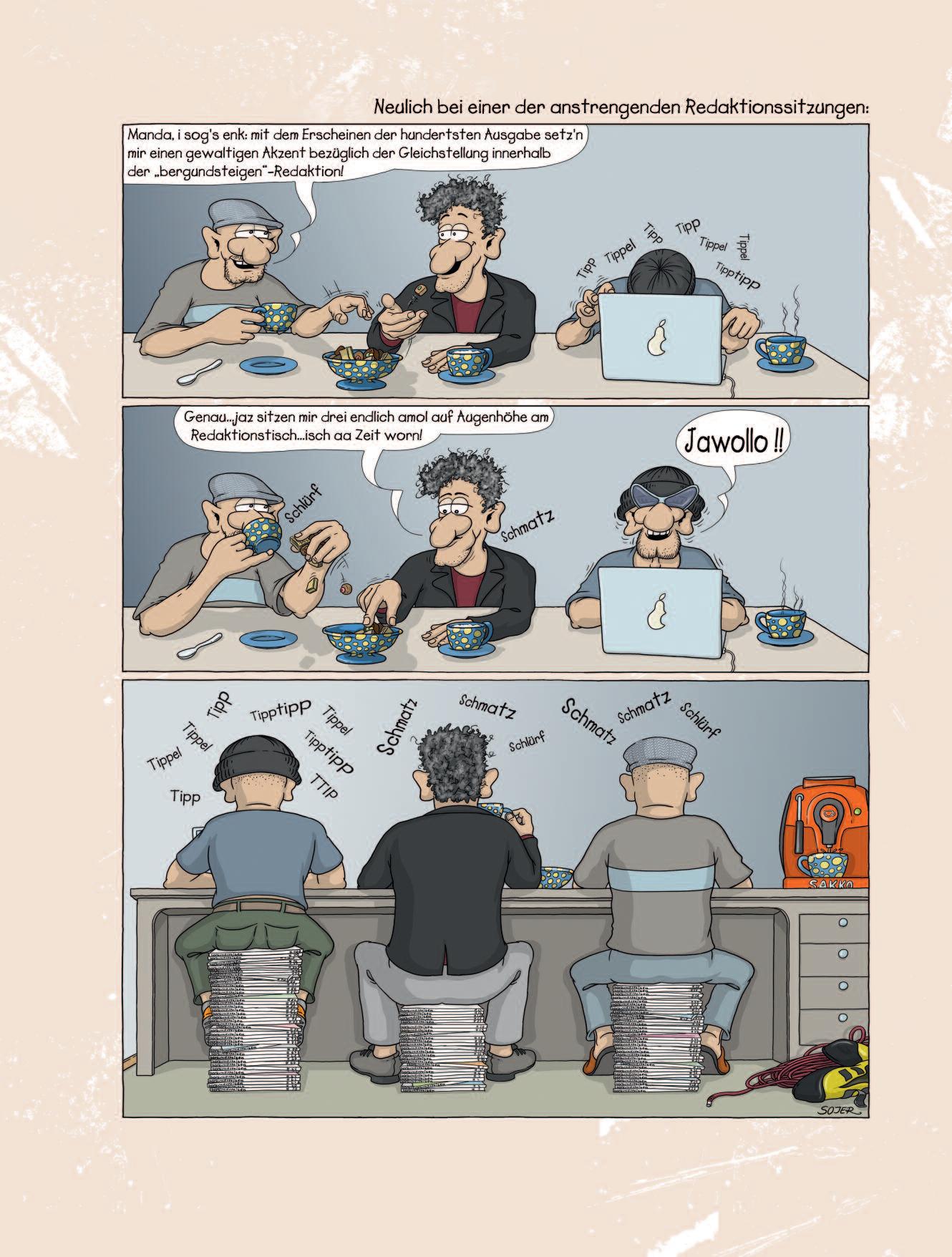 Die Idee dieser Seite ist es, die Menschen vorzustellen, die an bergundsteigen mitarbeiten Vom harten Kern, die bei jeder Produktion dabei sind, haben sich hier unsere Grafikerin Christine Brandmaier, Korrekturleserin Birgit Kluibenschädl, Aboverwalterin Theresa Aichner und die Druckerei Alpina vorgestellt Fehlen nur noch unser Buchbinder und das Redaktionsteam, Walter Würtl und ich Zur #100 sind wir zum Zug gekommen Eigentlich ich, weil Walter weder zu motivieren noch zu bestechen war Wirklich Lust, hier etwas zu meiner Person und meinem Zugang zu bergundsteigen zu schreiben, habe ich ehrlicherweise gerade auch nicht Morgen ist Endkorrektur, das Editorial auf der Seite gegenüber habe ich mir gerade abgemüht und es sind noch zig Sachen zu erledigen, bis das fertige pdf zur Druckerei geht