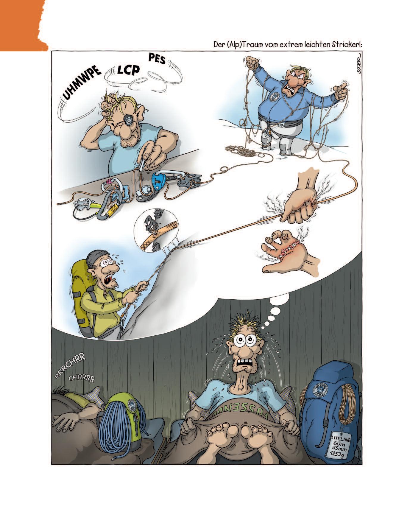 Beginnen tut das Heft mit einem Gespräch mit Peter Geyer u a zum Gehen am Kurzen Seil, ein Thema zu dem Chris Semmel vom VDBS dann aktuelle Ergebnisse bei der Verwendung einer Dyneema-Leine vorstellt