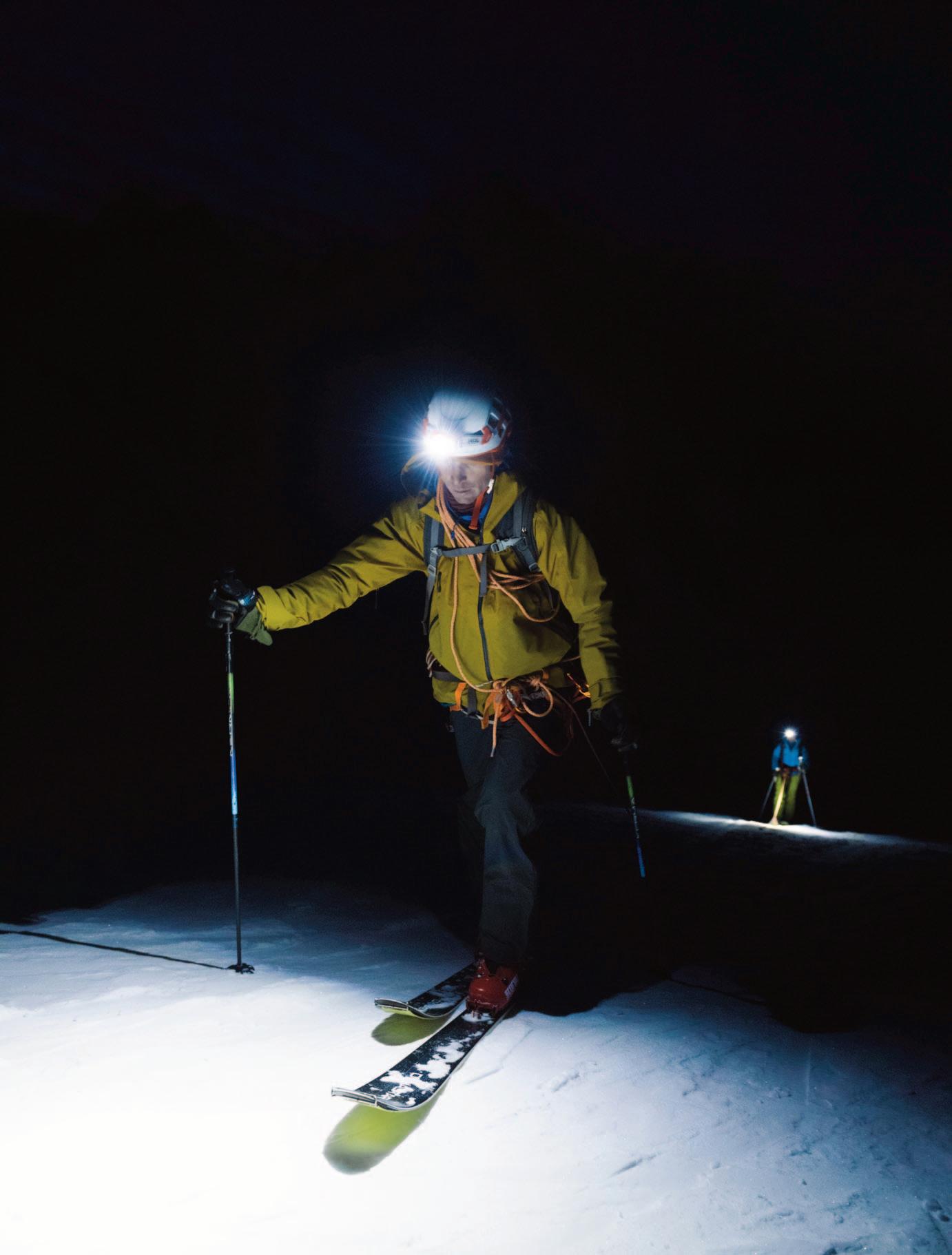Illustration: Georg Sojer Vivian Bruchez und Lise Billon auf Skitour im Mont Blanc Massiv. © 2018 - Petzl Distribution - Marc Daviet