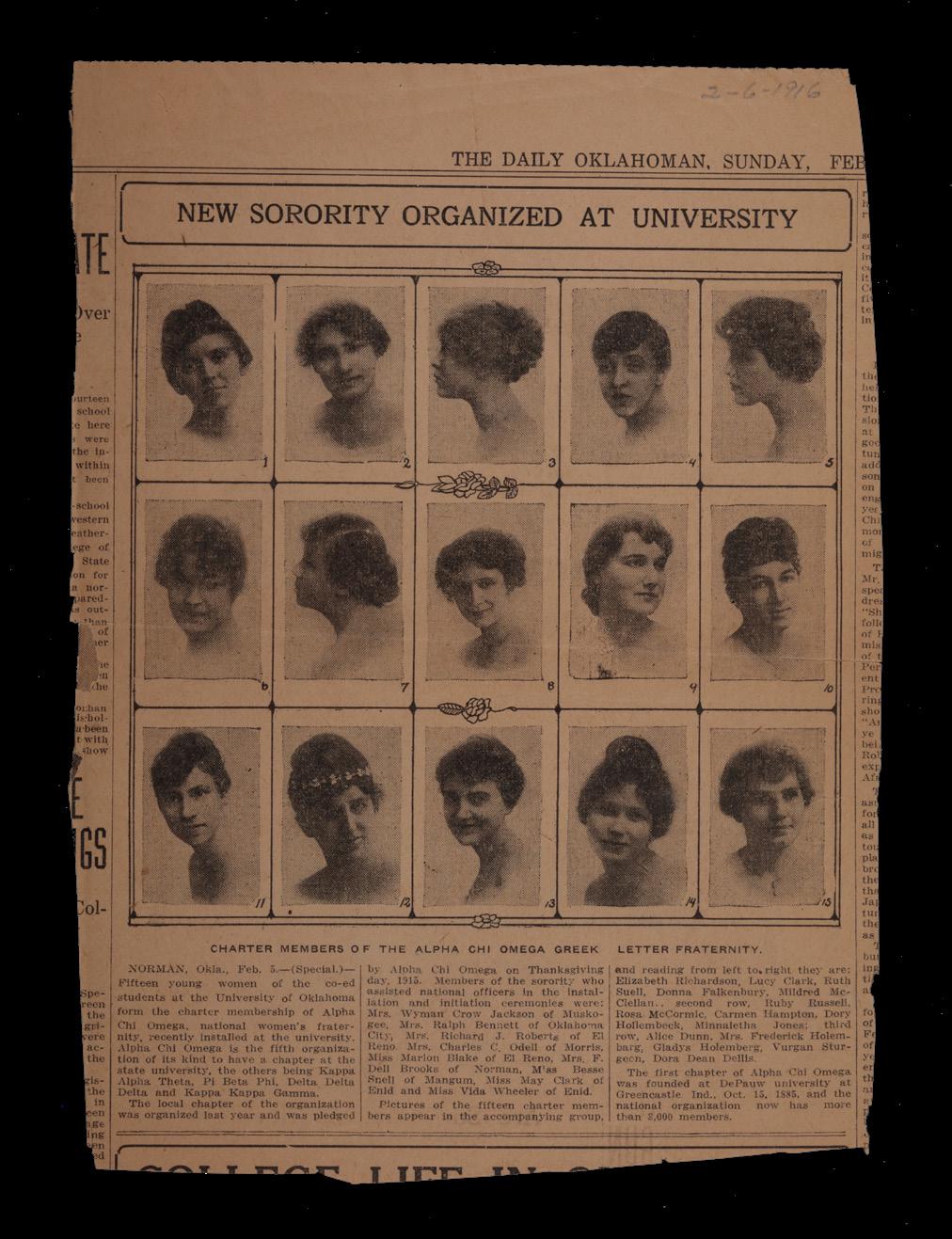 A CLIPPING FROM THE DAILY OKLAHOMAN ANNOUNCING THE ESTABLISHMENT OF THE PSI (THE UNIVERSITY OF OKLAHOMA) CHAPTER, AN EFFORT THAT MAUDE SUPPORTED
