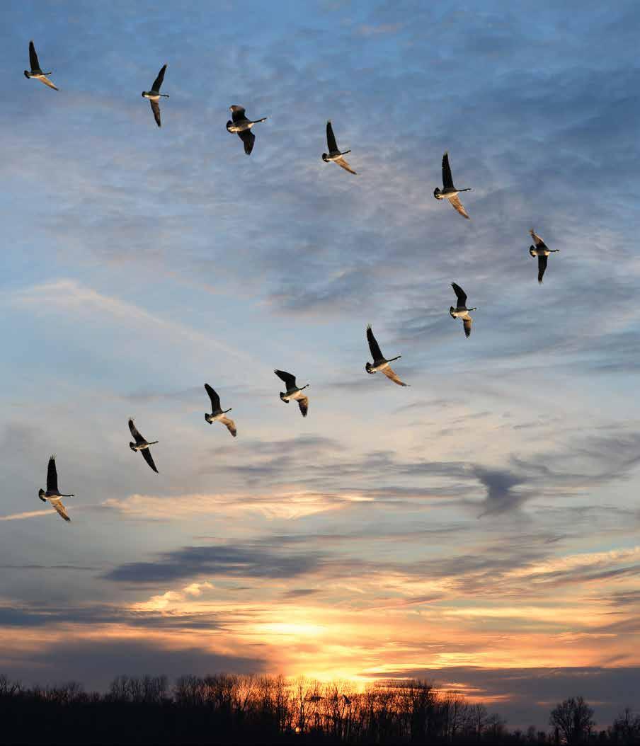 Geese represent family, communication, guidance and the journey of life. They have strong social bonds, flying in a V formation, sharing the leadership role and helping the flock navigate challenges. Canada geese are a national symbol of Canada, representing identity, resilience and commitment to nature. Alpha Delta Kappa sisters share these qualities and that is why we have chosen geese in flight for the December cover.