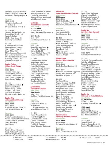 Tamara Lynch Baskins Donna M. Benge Karin Whetstone Culter Carol Anderson Gandy Kristen Fagre Healy Ruth Boyle Holt Mary Sue Myers Myrtle Hickman Stanley Grace C. Wright Epsilon Kappa Pittsburg State University Supporters $250 - $499