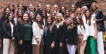 Prepping for the future starts now. Kaitlynn Sorondo, VP of new member education and member experience, is interning with the Jacksonville Sharks arena football team. She is one of the team’s multimedia staff, creating content for social media, editing videos for the jumbotron and updating the website. In addition, she films the football and dance teams on game day to use for future marketing content. Additionally, Emily Sullivan, VP of finance, was awarded the 1975 award in recognition of her achievements in student government.