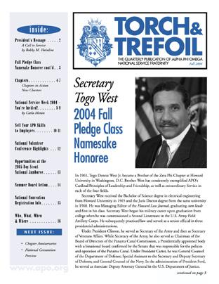 “The young men and women of Alpha Phi Omega are wonderful people who can set positive examples for youngsters struggling in school. As college students, you have made it in their eyes and you are important role models for them. Your service sends a powerful message about the importance of literacy and the value of an education. There is no surer way to be of service to your community and your nation than helping a young person realize his or her potential.” Togo West, Zeta Phi ‘61