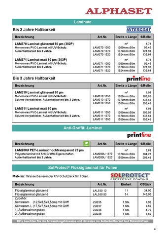 Bis 3 Jahre Haltbarkeit Bezeichnung LAM310 Laminat glänzend 80 µm Monomeres PVC-Laminat mit UV-Schutz. Solvent-Acrylatkleber. Außenhaltbarkeit bis 3 Jahre.