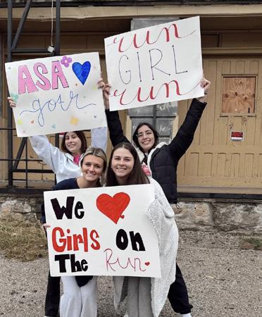 Avah Hart, Ella Hardman, Callie Rosenberger and Delaney Scharnus cheered on participants during the philanthropy event, Boys on the Run, which supports Alpha Sigma Alpha’s national philanthropy: Girls on the Run.