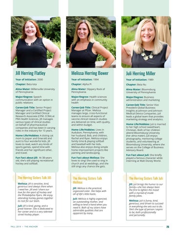 The Herring Sisters Talk Jill: Melissa: Jill is sensitive, kind, generous and always there when I need her. Jill and I share our love for the sport of hockey and the Philadelphia Flyers. We enjoy attending hockey games together to root for our team. Juli: Jill is kind, giving, and a great listener. She is dedicated to her career and is a very talented street hockey player.
