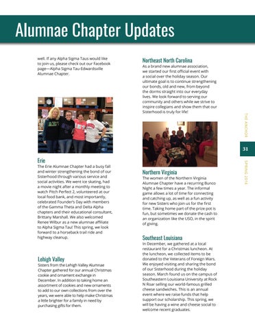 Alumnae Chapter Updates well. If any Alpha Sigma Taus would like to join us, please check out our Facebook page—Alpha Sigma Tau-Edwardsville Alumnae Chapter.