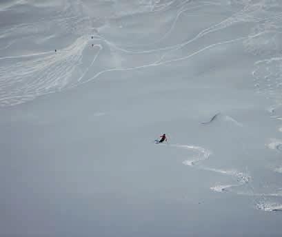 5. Tag: Gewaltige Freeride-Abfahrt im Arlberg-Gebiet. Auffahrt mit Diedamsbahn und weiter zum Neuhornbachhaus.