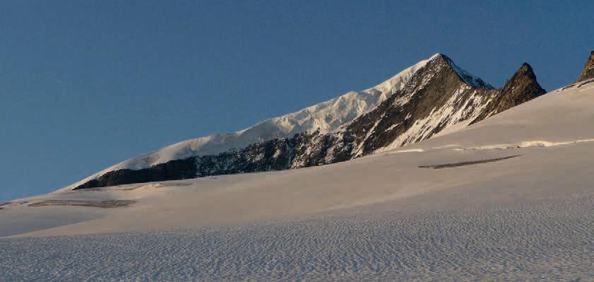 Wir starten früh mit einer kurzen Abfahrt auf den Persgletscher. Mit Fellen Richtung Cambrena-Eisbruch. Oberhalb über weite Hänge hinauf zum Absatz am Fu der Os lanke. Hier richten wir unser Skidepot ein. Zu Fu und mit Steigeisen über einen steilen Hang und etwas exponiert über den schmalen Schnee grat, der zum Ostgipfel führt. Die Abfahrt bis unter die Diavo lezza folgt der Aufstiegsroute. Anschlie end zehn Kilometer auf der langen Gletscherabfahrt nach Morteratsch. Schlie lich mit der Bahn zurück zum Parkplatz.