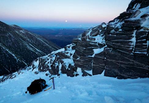have to deal with it. The sun set on one side and moon rose on the other. I found a suitable place to dig a bivvy spot out of the wind and settled in for a chilly night.