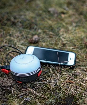 196 lumen camping lantern and charging station for illuminating your camp life, with USB power output to recharge mobile phones.