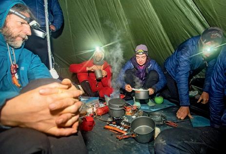 Cavers are tough, we have to be, we train our minds, our bodies and practice how to deal with stuf going pear-shaped in such remote and committing places but... stop it Steph! I pull my mind back in line, doubt or fear are luxuries one cannot aford down here. I mean even if one wanted to, ya can’t exactly opt out now, 650m beneath the mountains with 100s of metres of rope climbs between you and the surface. It’s the stuf that would drive some mad but the bravery required and discomfort of being cold, wet and chafed afer days spent camping underground are insignificant compared to the elation felt whilst doing original exploration.