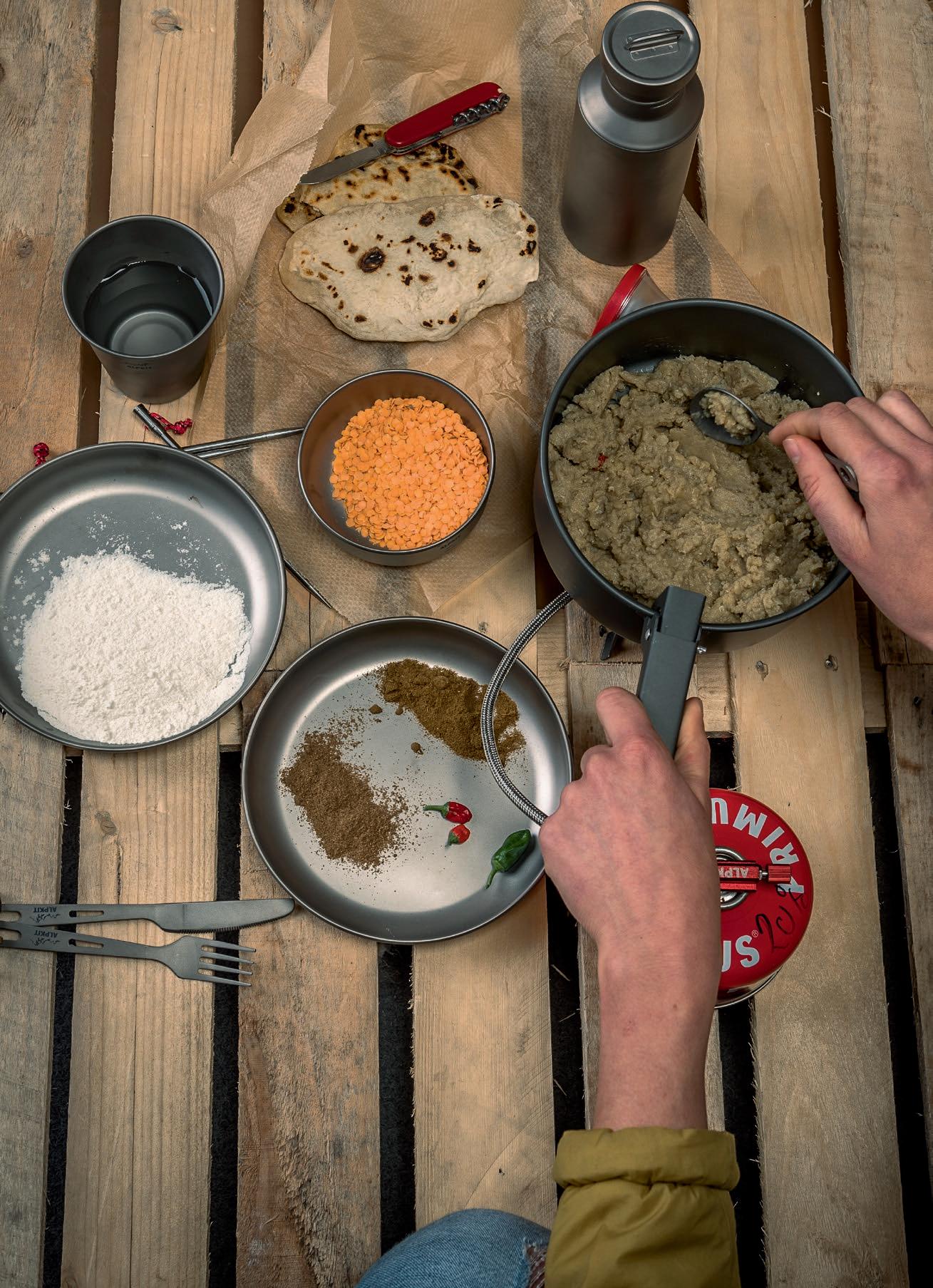 4. Eat a hot meal but cook it outside of your tent when possible. Cooking inside your tent increases condensation within your tent, which will freeze overnight and melt again in the morning, getting your stuf all wet.