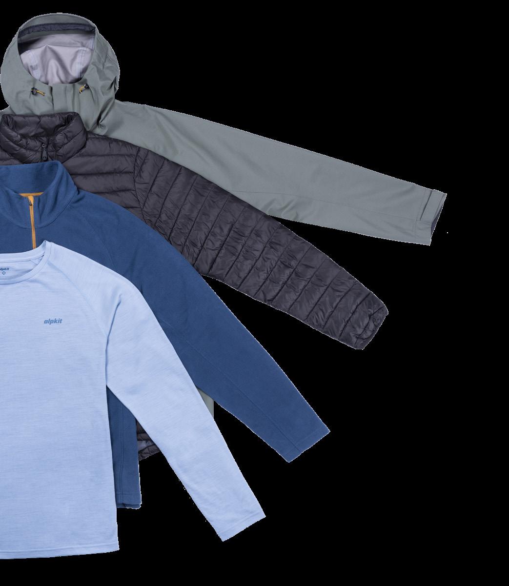 2. Talini Super lofty PrimaLoft® synthetic down insulation £99.99 • 3. Kelpie Reycled micro-fleece layering top for trails, travel and sundown warmth £49.99 • 4. Aztec long sleeve Ultra-lightweight, corespun merino long sleeve base layer for high intensity performance £52.99 • 5. Parallax Lightweight waterproof trousers with a breathable 2.5 layer fabric and comfort that's made for movement £119.99