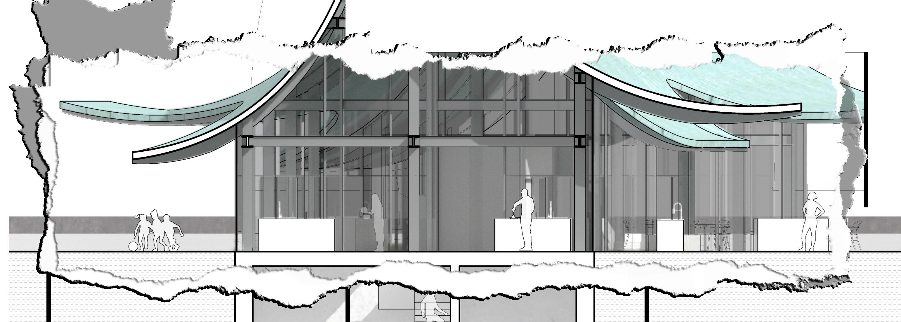 As the building flows across the site, the program flows across in a private to public manner. Through this, more public green space and lounging areas are focused towards the waterfront and the cooking/learning engagement areas.