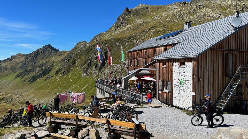 Wir starten bereits mitten im besten Mountainbike-Country. St. Anton ist nicht nur unter Skifahrern bekannt. Unser gemütliches Starthotel liegt direkt am Einstieg ins Verwalltal, das bis hoch zur Heilbronner-Hütte führt. Hoch türmen sich neben uns bereits die Berge auf, die Rosannaschlucht ist ein erstes Highlight. Wir passieren zunächst die Konstanzer Hütte, ab da wird die Landschaft einsam und wild. Für die meisten Wanderer ist diese Strecke zu mühsam, das weite Tal mit den umliegenden Gipfeln gehört deshalb uns. Hier kreuzen sich gleich mehrere legendäre Transalp-Routen. Im teils mühsamen Anstieg zur Hütte treffen wir meist Gleichgesinnte. Das Schieben des Rades fällt unter diesen Bedingungen nicht allen leicht. Am Hochplateau angekommen entschädigt uns eine gewaltige, hochalpine Kulisse. Die Gipfel der Verwallgruppe sind über 3000 Meter hoch. Wie ein Adlerhorst thront dazwischen unser Mittagsstopp: die 2320 Meter hoch gelegene Heilbronner Hütte. Das Panorama ist kaum zu toppen. Eine deftige Brotzeit oder ein leckerer Kaiserschmarrn warten auf uns. Der Nachmittag ist dann nur noch Genuß pur. Die Abfahrt nach Galtür ein wahres Highlight. Der Alpenhauptkamm hat hier seinen besonderen Reiz. Im 4Sterne Haus liegen bereits die (alkoholfreien) Weißbiere kalt und die Sauna ist geheizt. In der Regel haben wir hier auch Wäscheservice (gegen Gebühr), das heißt die verschwitzen Trikots sind am Morgen wieder frisch.