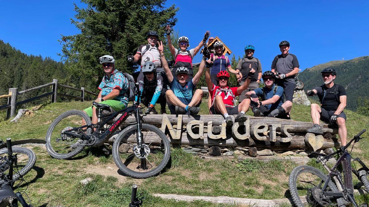 Mehr Alpen geht nicht. Die Schotterauffahrt von der Idalp zum Idjoch will bezwungen sein. Dünne Luft und steilste Anstiege machen uns dieses Unterfangen nicht leicht. Der Lohn für die Mühen kommt jedoch sofort: Die Blicke lassen alle Anstrengungen vergessen. Wann steht man mit dem Bike schon mal auf 2760 Metern Höhe? Auch bergab vom Idjoch werden viele extrem gefordert. Sowohl Bikepark- als auch Schotterstrecke gehen teils steil und technisch bergab. Doch je tiefer wir kommen, desto besser wird der Untergrund. Bald rauschen alle begeistert in Richtung Samnaun. Der Zitatenweg entpuppt sich dann als echtes MTB-Highlight auf einer Höhenlinie, ehe wir auf schneller Asphaltabfahrt hinunter zur Kajetansbrücke rollen. Wir folgen einem Schotterweg bis nach Altfinstermünz und müssen dann kurz steil hoch zurück zum Inntalradweg, ehe wir nach Martina erneut ins Gelände abbiegen. Die Auffahrt im Wald ist schweißtreibend, doch auf bestem Untergrund. Purer Genuß dagegen die Abfahrt und ein kurzer Trail bis direkt vor unser Hotel.