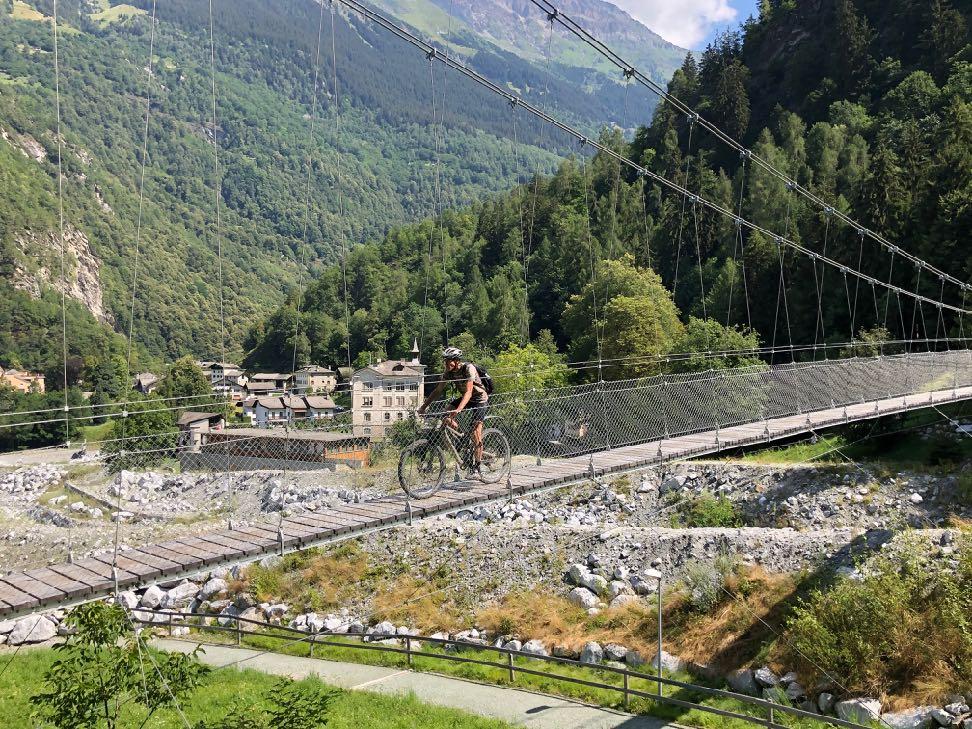 Die neue Hängebrücke im Bergell.
