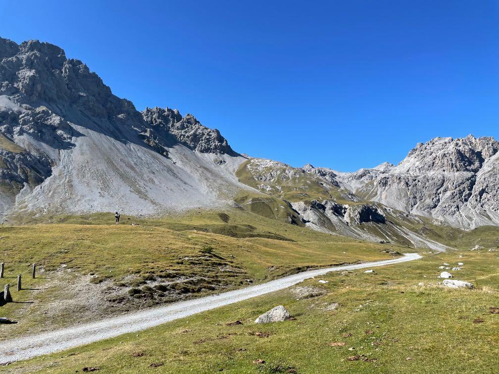 1000 Höhenmeter auf 55 Kilometer können ganz schön anstrengend sein. Dieses Resümee werden viele heute am Ende des Tages ziehen. Dabei erwarten uns den ganzen Tag nur beste Mountainbike-Wege auf unterschiedlichstem Untergrund. Zunächst geht es locker auf einem Asphaltradweg bergauf bis zum Einstieg der Schotterstrecke hoch zur Forcola di Livigno.