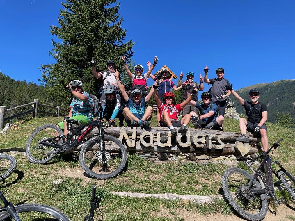 uriger Mittagsrast erreichen wir am Talgrund die Kajetansbrücke. Hier wartet ein weiteres historisches Highlight auf uns. Der Innübergang bei Altfinstermünz war über viele Jahrhunderte eine der wichtigsten Handelsruten Europas. Abenteuerlich durchbricht der wilde Fluss hier eine Engstelle zwischen den Felsen. Der Abstecher lohnt die kurze Schiebepassage danach um den höher gelegenen Innradweg zu erreichen. Wir rauschen wieder zurück in die Schweiz. Das Engadin mit seinen Bergen heißt uns willkommen. Über Schmugglerwege erreichen wir einsamste Bergregionen. Wie haben die Menschen hier wohl vor 100 Jahren gelebt? Tief unter uns liegt das enge Bett des rauschenden Inns. Kaum zu glauben, dass auch wir vor zwei Stunden noch da unten waren. Über eine herrliche Waldabfahrt erreichen wir schließlich unser Tagesziel in Nauders. Wir übernachten im 4-Sterne-Hotel mit Wellness-Landschaft und allem, was das Sportlerherz begehrt. Wieder ist Wäscheservice möglich.