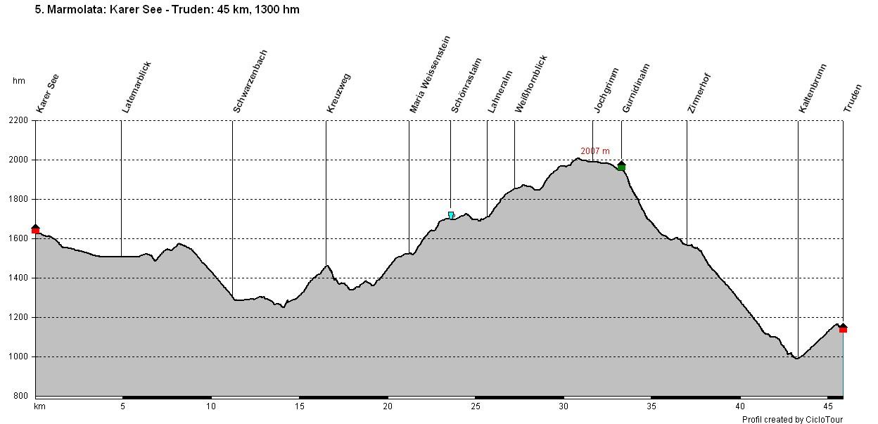 Streckenanforderung 5.Tag - 45 km - 1300 Höhenmeter