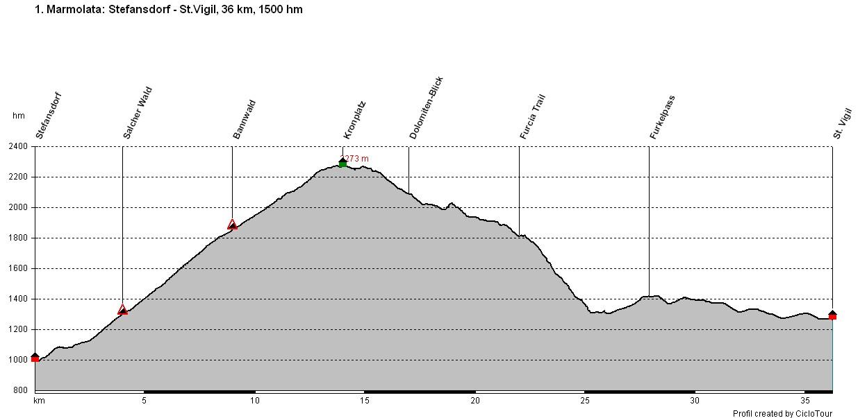 Streckenanforderung 1.Tag - 36 km - 1500 Höhenmeter